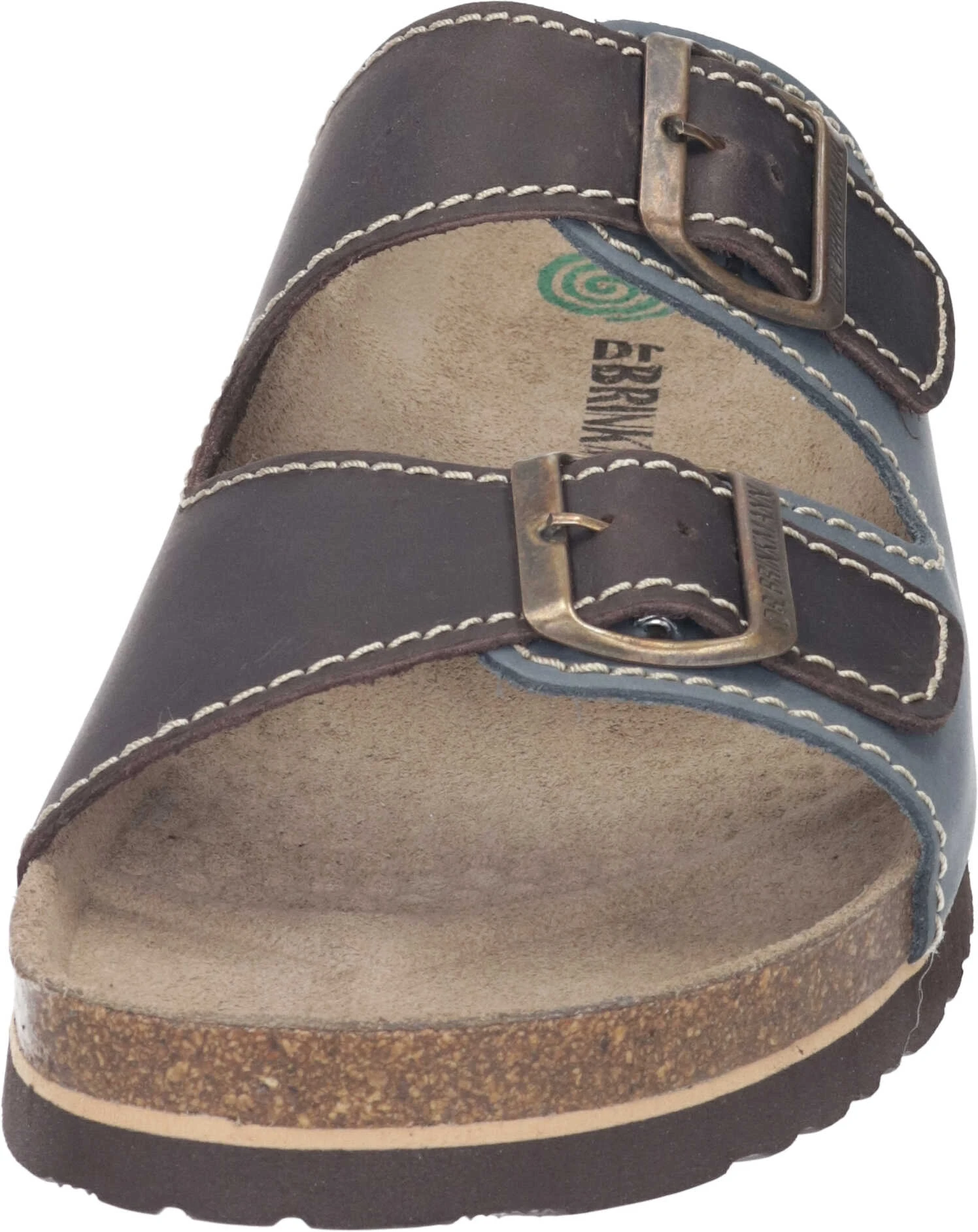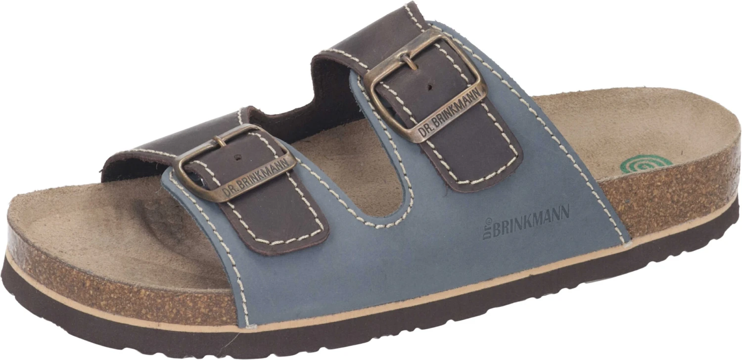 Als langlebiger Schlappen für Zuhause oder als lässige Herrensandale für die Freizeit: ein Paar dieser praktischen Herren Pantoletten von Dr. Brinkmann sollte wirklich jeder Mann besitzen. Das Ober- und Innenmaterial sowie die Decksohle bestehen aus Echtleder und machen den Schuh zu einem hochwertigen und treuen Begleiter. Das Fußbett ist angenehm gepolstert und bietet Ihnen durch die speziellen Ausformungen eine ergonomische Unterstützung Ihres Fußes. Die Besonderheit bei diesen Herren Pantoletten sind die zarten Massagenoppen, die stimulierend, durchblutungsfördernd und entspannend wirken. Die Schuhform ist weit, weshalb der Schlappen auch für breitere Füße geeignet ist. Durch die zwei verstellbaren Riemen, können Sie den Schuh individuell an Ihren Fuß anpassen. Die schicke Farbkombi macht diese Herrensandale zudem zu einem echten modischen Must-have!