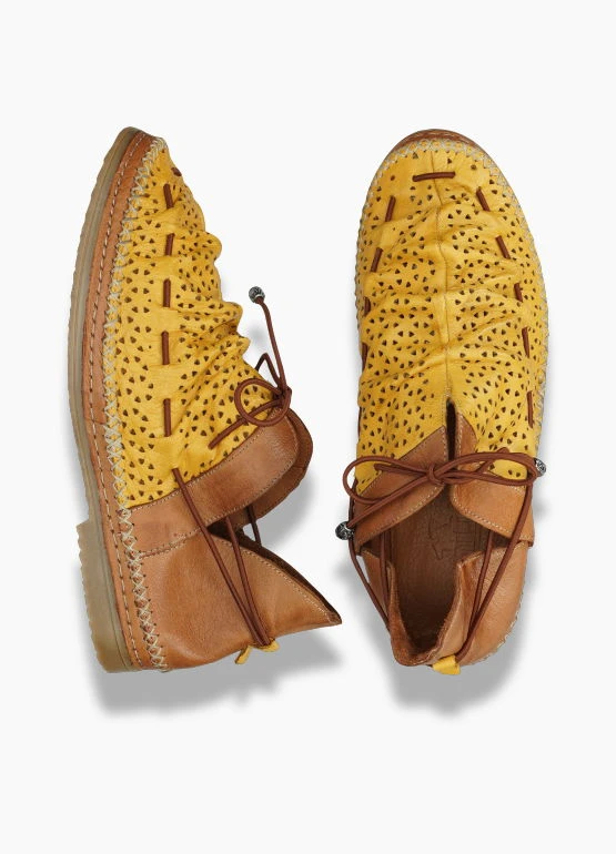 Leicht, lässig und originell: Unser Manitu Damen Schnürer im gedeckten Farbton. Durch die raffinierte aber einfach zu handhabende Schnürung sitzen die Schuhe wunderbar bequem am Fuß und bieten guten Halt. Das softe matte Leder mit den kleinen Cut Outs, sorgt darüber hinaus für Leichtigkeit und ein angenehmes Tragegefühl. Der Schnürschuh ist in den Farben Gelb, Grün, Orange und Beige erhältlich.