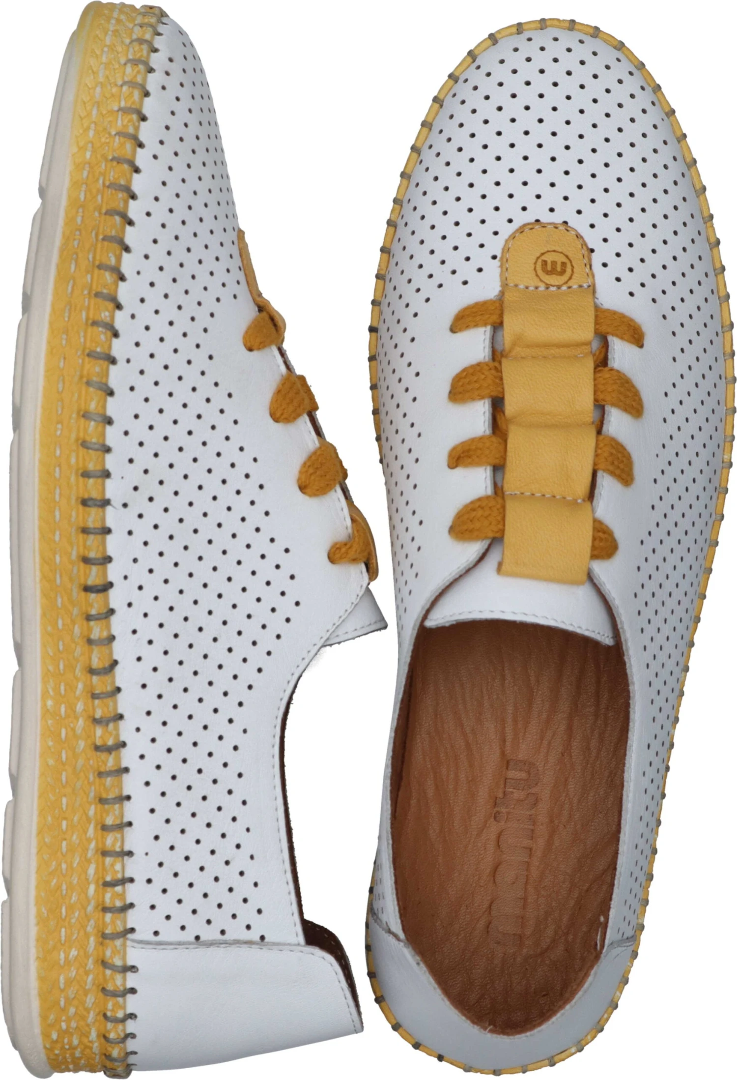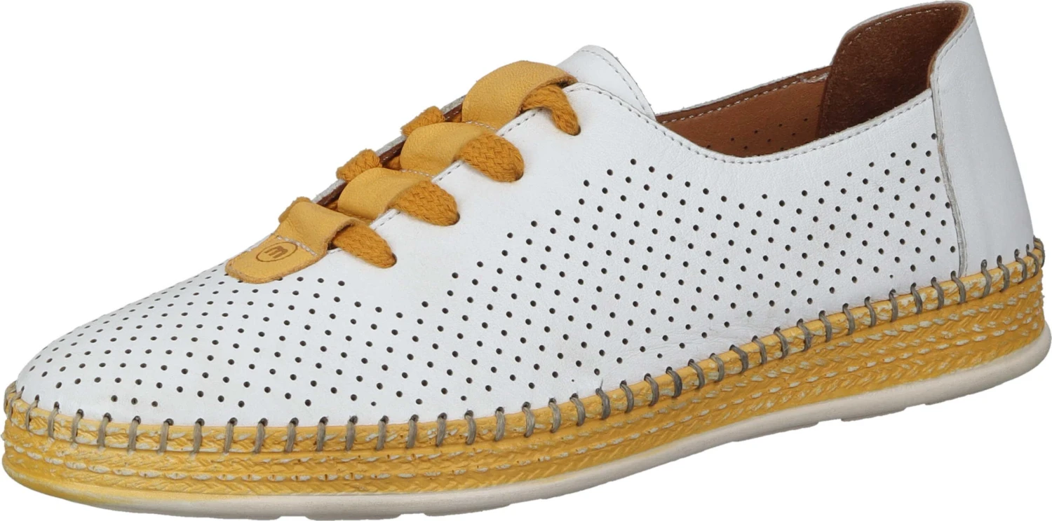 Der Komfort dieser Schnürschuhe von manitu sorgt bei jedem Schritt für ein gutes Gefühl. Die Schuhe verbinden ein luftig-leichtes Tragegefühl mit einem modischen Design. Aus hochwertigem Leder mit Cut-Out-Elementen gefertigt, schmiegt sich der Schuh wie eine zweite Haut an den Fuß. Die PU-Sohle sorgt für gute Bodenhaftung und mit der herausnehmbaren, gepolsterten Lederdecksohle können Sie den Tragekomfort ganz nach Ihren persönlichen Vorlieben anpassen. Die auffälligen gelben Akzente an Schnürung und Sohle machen diesen Schuh zu einem echten Hingucker. Dieser Schnürschuh ist die perfekte Wahl für alle, die modisches Design mit erstklassigem Tragekomfort verbinden möchten.