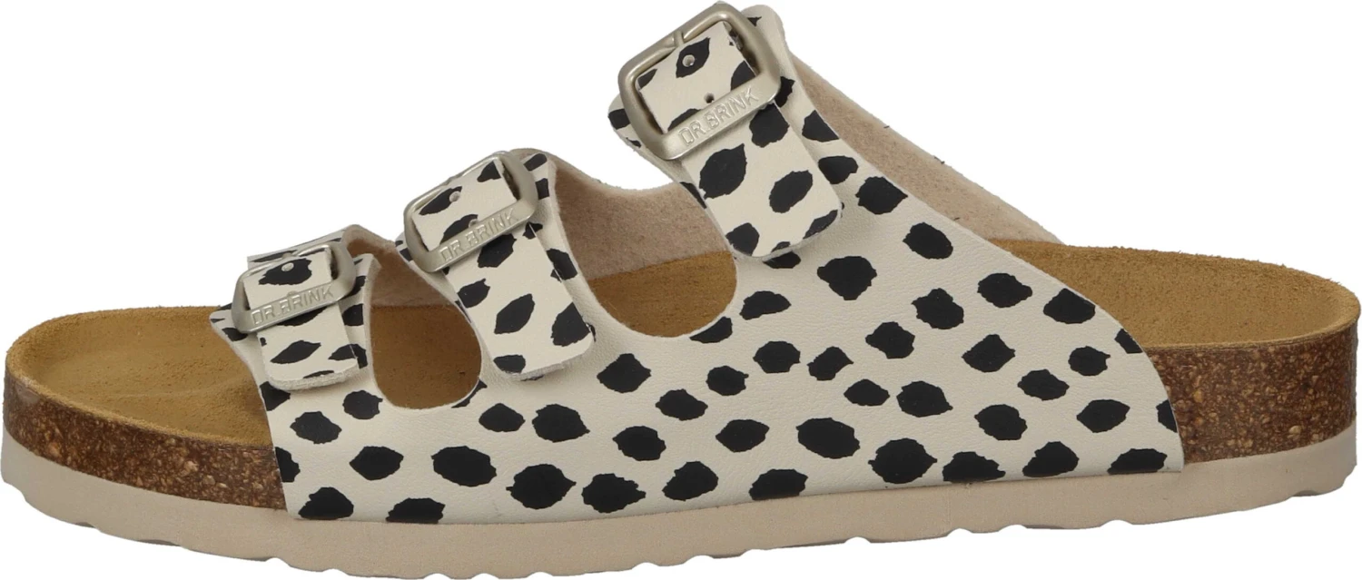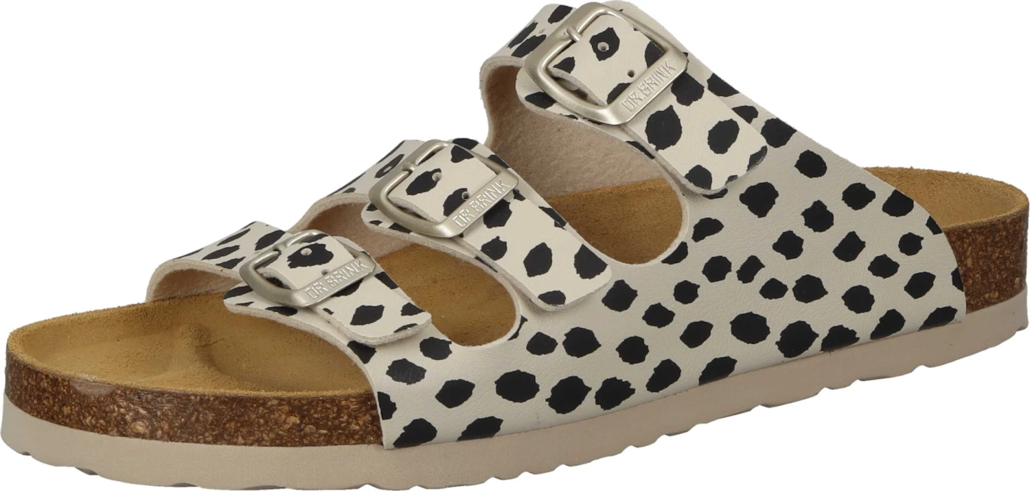 Erleben Sie modische Leichtigkeit mit den Dr. Brinkmann Damen Pantoletten NOVELDA. Der Beige-Look mit schwarzen Punkten verleiht jedem Schritt Stil. Dank des ergonomischen Fußbetts bieten die Sandalen nicht nur einen trendigen Auftritt, sondern auch Stabilität und optimale Fußunterstützung. Das pflegeleichte Obermaterial aus strapazierfähigem Flor, die echte Lederdecksohle und die leichte Laufsohle machen die Schuhe zu den perfekten Alltagsbegleitern. Drei verstellbare Riemen sorgen für die ideale Passform. Der lässige Look eignet sich sowohl für sonnige Tage als auch für gemütliche Stunden zu Hause.