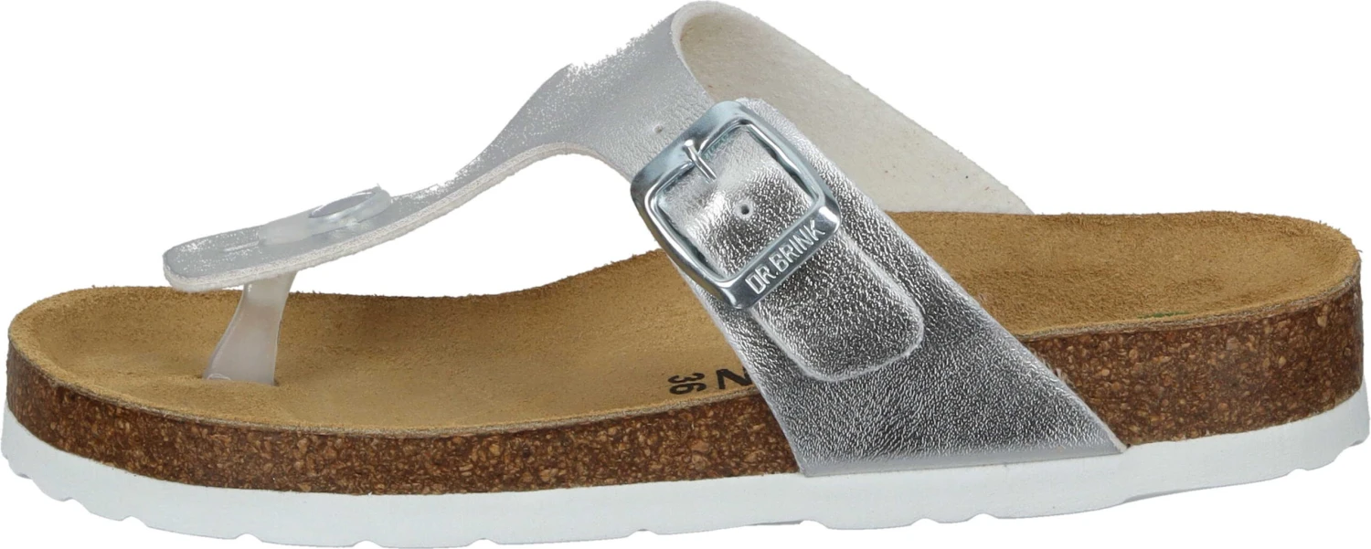 Der Dr. Brinkmann Zehentrenner ist ein echter Klassiker, der optimalen Halt mit einem minimalistischen, modischen Design vereint. Diese Sandale wurde im schimmernden Metallic-Look neu interpretiert und lässt den Klassiker je nach Variante in silbernem oder goldenem Glanz erstrahlen. Garantiert macht der Schuh auch Ihr Outfit zu einem Blickfang. Mit der seitlichen Schnalle kann die Riemenweite individuell reguliert werden. Das Naturform-Fußbett sorgt dank der schrittdämpfenden Eigenschaften und der atmungsaktiven Lederdecksohle für Tragekomfort – den ganzen Tag. Das Obermaterial besteht aus pflegeleichtem und reißfestem Flor. Die helle, federleichte Laufsohle verspricht ein unbeschwertes Geherlebnis.