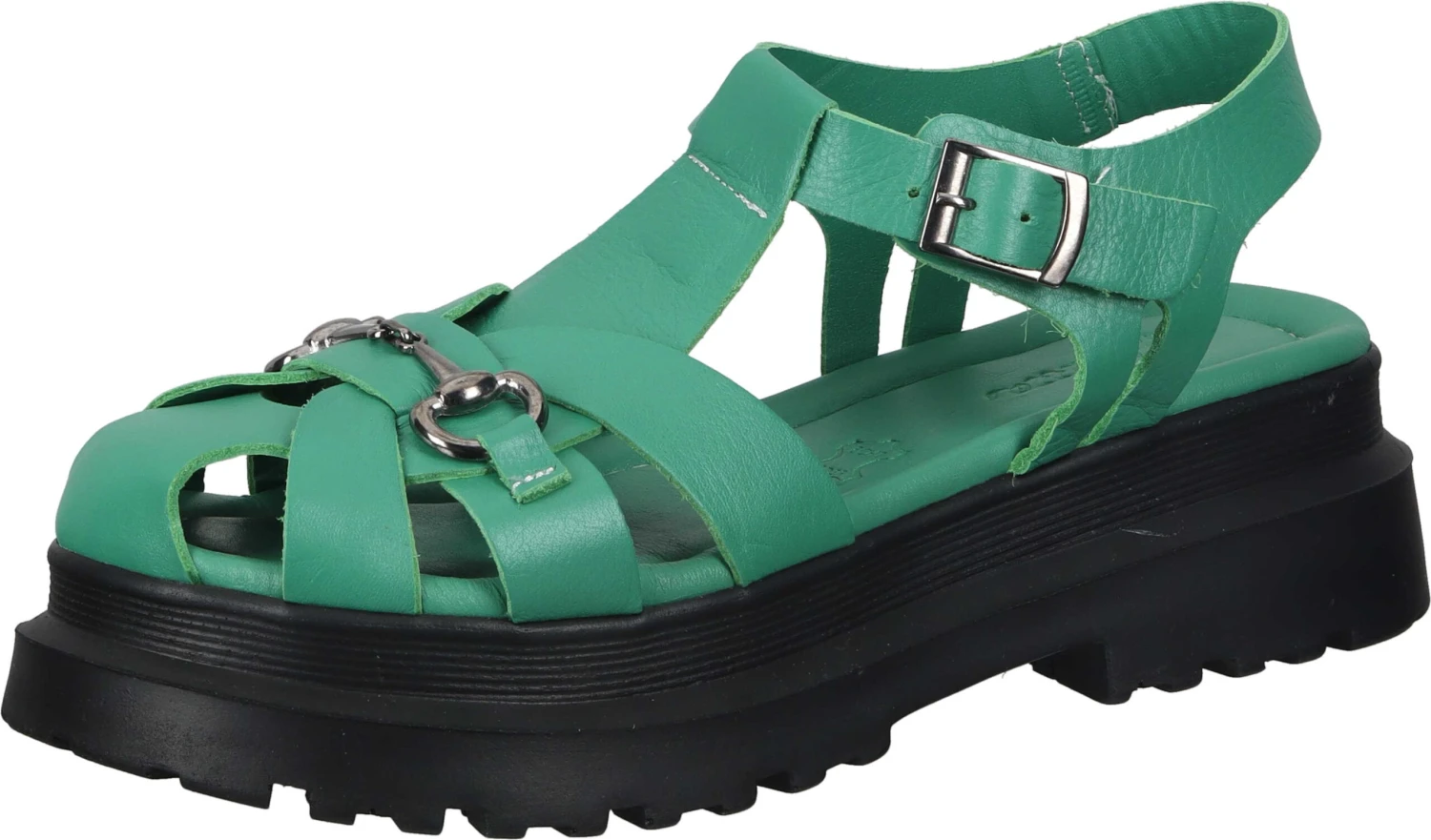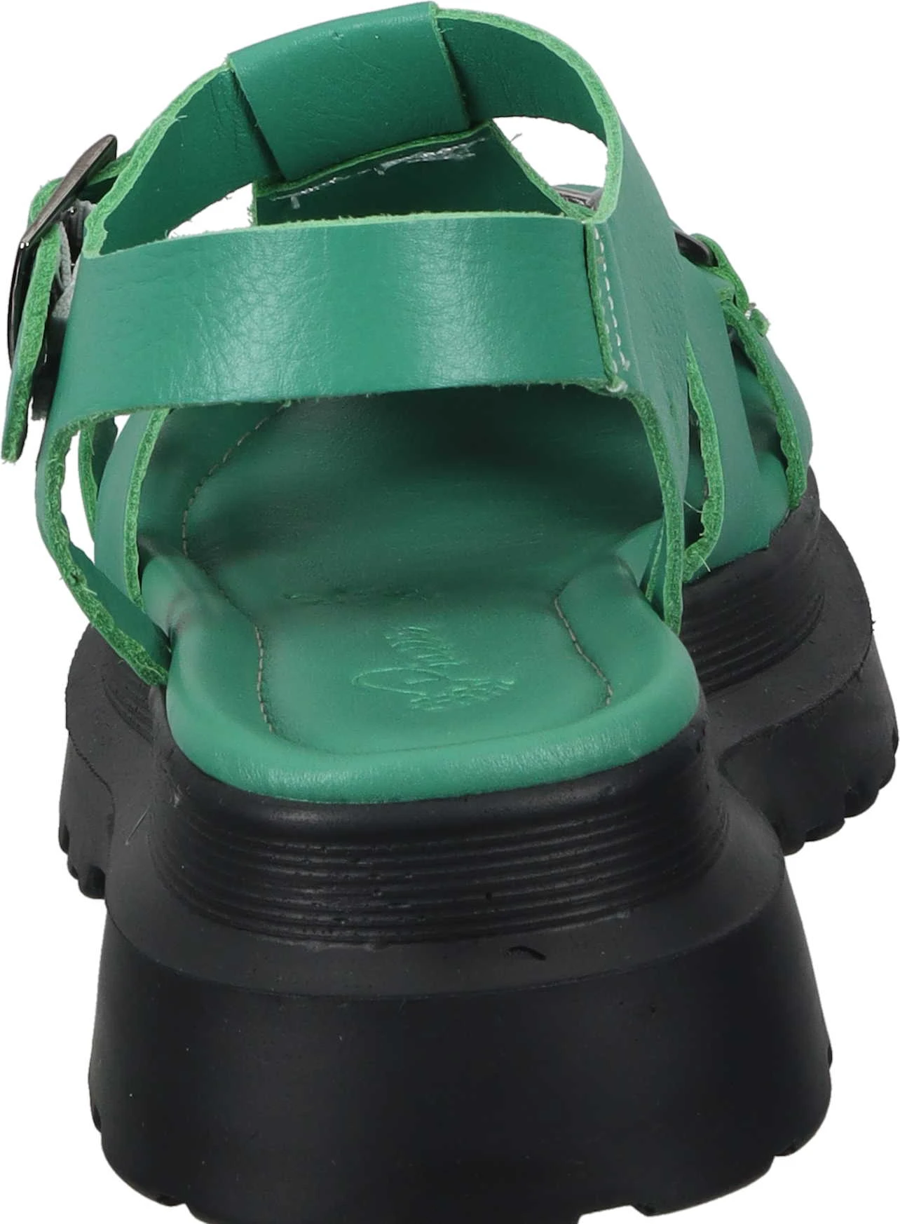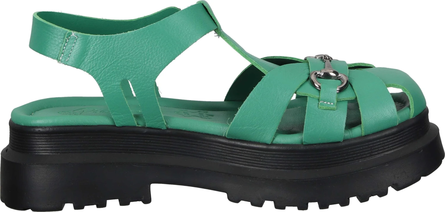 PIAZZA präsentiert hier diese modischen Damen Plateau-Sandalen in Grün. Das Leder ist handschuhweich gearbeitet und überzeugt durch Qualität und Langlebigkeit. Das schmückende, silberfarbene Detail auf dem Schuhrücken und die raffinierten Riemen bilden eine mondäne Silhouette. Der vordere Bereich der Sandale ist halb geschlossen, was die Zehenpartie schützt. Guten Halt und eine angenehme Passform bietet zudem der seitliche Verschluss. Markant profiliert verspricht die leichte Sohle mit dem gepolsterten Lederfußbett höchsten Tragekomfort.