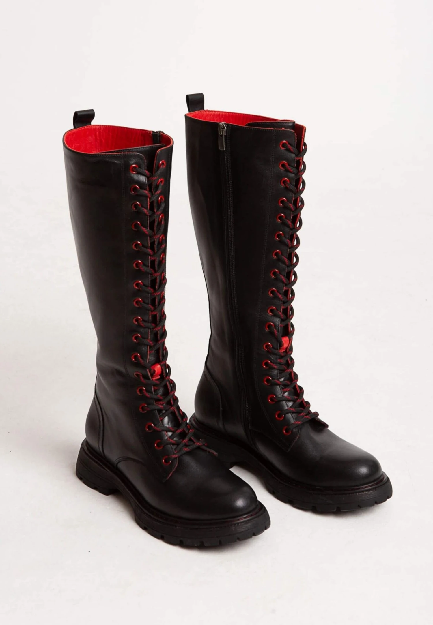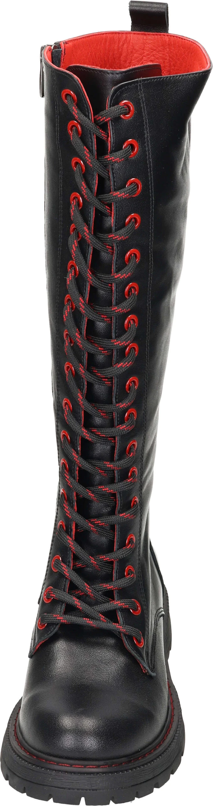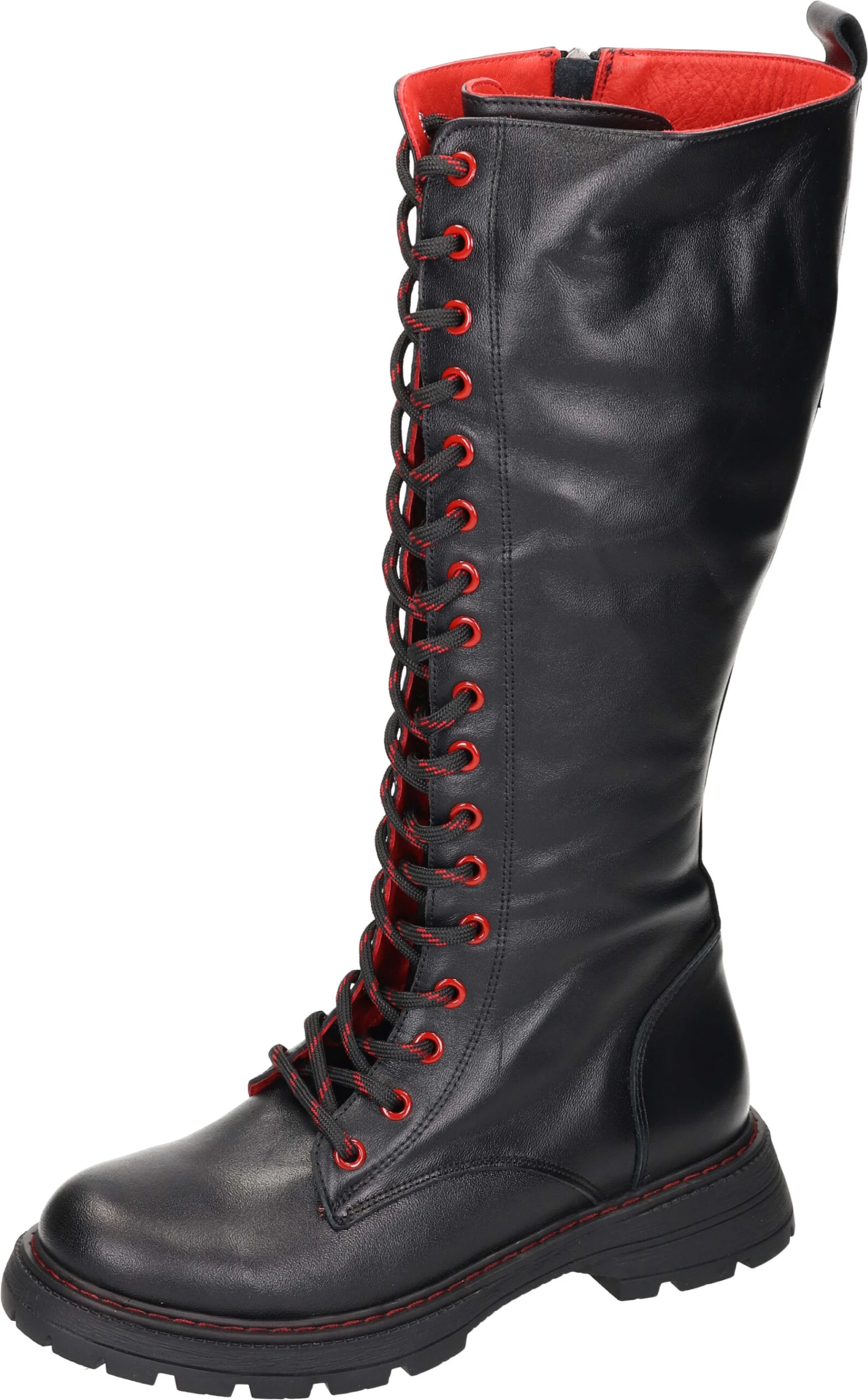 Mit diesen PIAZZA Damen Stiefeln setzen Sie ein modisches Statement der Extraklasse! Ein rockig-lässiges Design im Biker-Style trifft auf Komfort und Wertigkeit. Bei einer Schafthöhe von 35 cm zeigt sich das formvollendete und geschmeidige Leder der Stiefel von seiner besten Seite. Die Laufsohle mit einem Blockabsatz von 3 cm ist robust, rutsch- und abriebfest und mit einem guten Profil versehen. Die lange Schnürung besitzt sowohl dekorativen Wert, als auch praktischen Nutzen, denn mittels dieser lässt sich der Stiefel in der Weite optimal an Ihre Bedürfnisse anpassen. Geziert wird der Lederstiefel mit kontrastreichen roten Highlights an den Nieten, der Sohlennaht, der Schnürung und im Innenbereich des Schuhs. Der Ein- und Ausstieg ist mit dem seitlichen Reißverschluss problemlos möglich. Diese Damen Stiefel werden garantiert nicht nur in der urbanen Szene für Staunen sorgen.