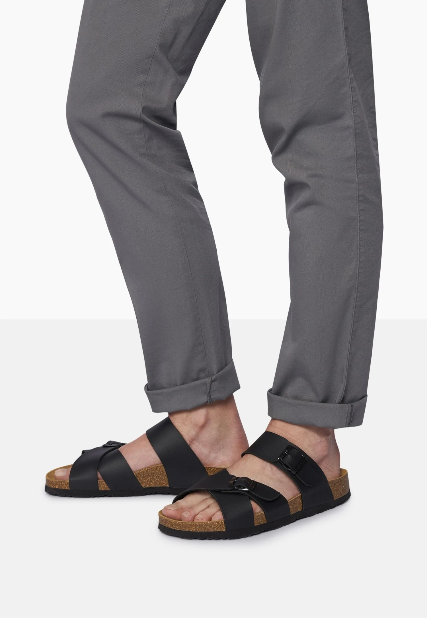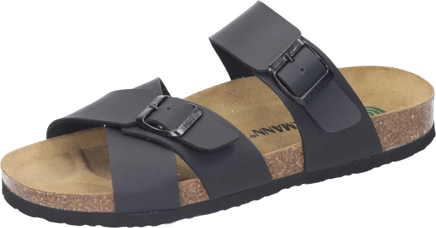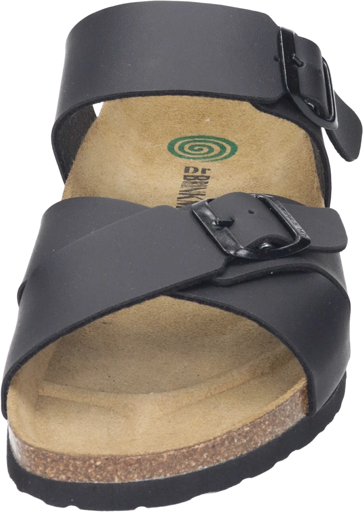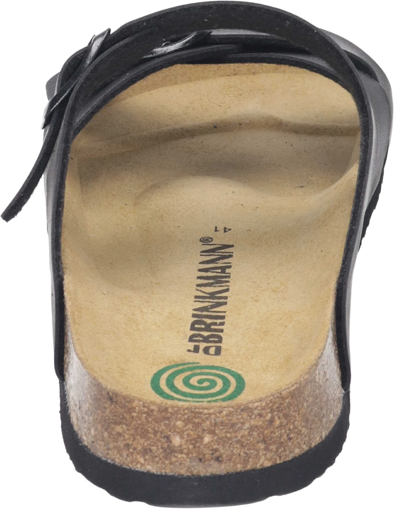 Lässige Herrensandale zum Reinschlüpfen von Dr. Brinkmann. Hier dürfen wir Ihnen ein Modell vorstellen, das Design und Komfort gelungen verbindet. Die zwei überkreuzten Riemen am Vorderfuß machen aus dem klassischen Schlappen einen trendigen Herrenschuh, der Ihnen einen angesagten coolen Look verleiht. Gleichermaßen überzeugt die Herrensandale mit Komfort durch das anatomisch geformte Fußbett, dass Ihre Füße optimal unterstützt, gesund erhält und langes ermüdungsfreies Laufen garantiert. Durch die speziellen Ausformungen, z.B. an der Zehenpartie, wird Ihnen eine ergonomische Unterstützung Ihres Fußes geboten und der allseitig hohe Rand des Fußbetts schont und stützt Ihre Gelenke. Zudem haben Sie damit immer ein absolut sicheres Gefühl am Fuß. Diese Herren Pantolette in schwarz begleitet Sie modebewusst und bequem durch den Alltag.